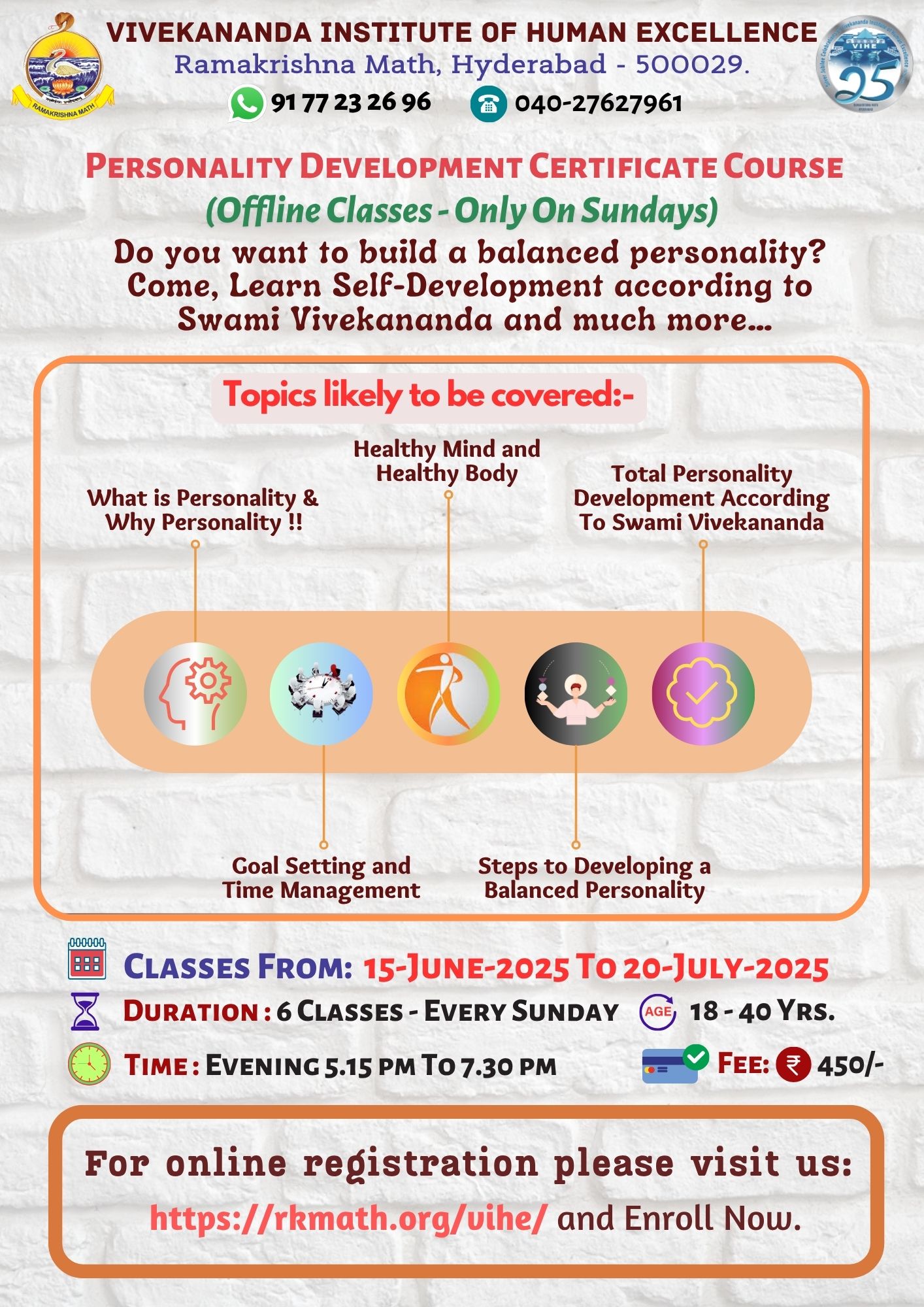 Personality Development (Sundays Evening – Offline Classes) Certificate Course