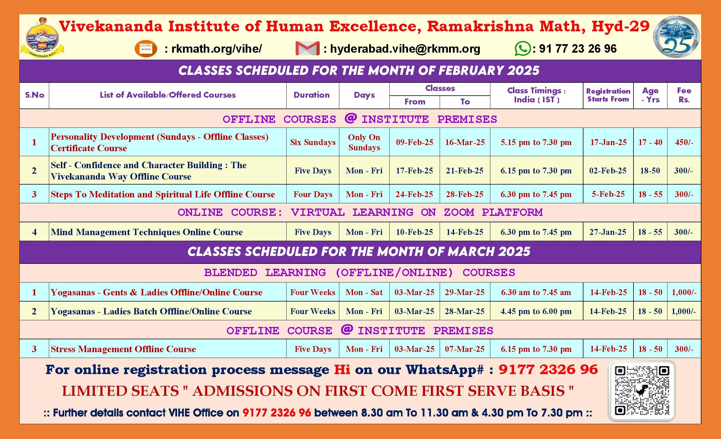 For online registration of all VIHE Offered Courses Visit https://rkmath.org/vihe/ and Register Now
