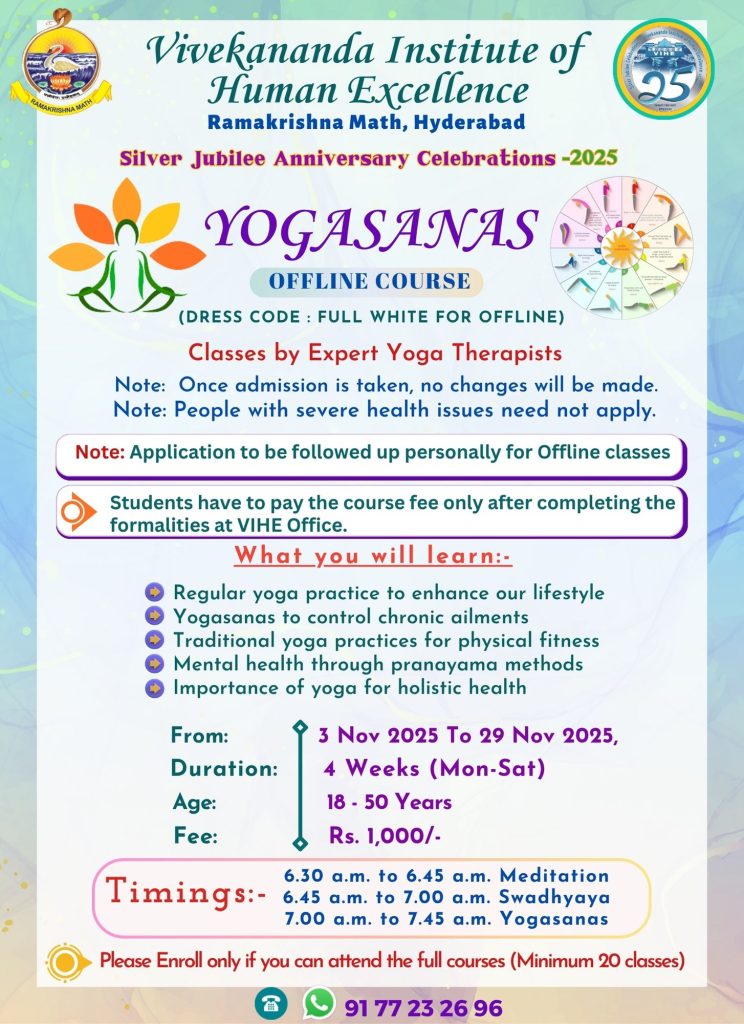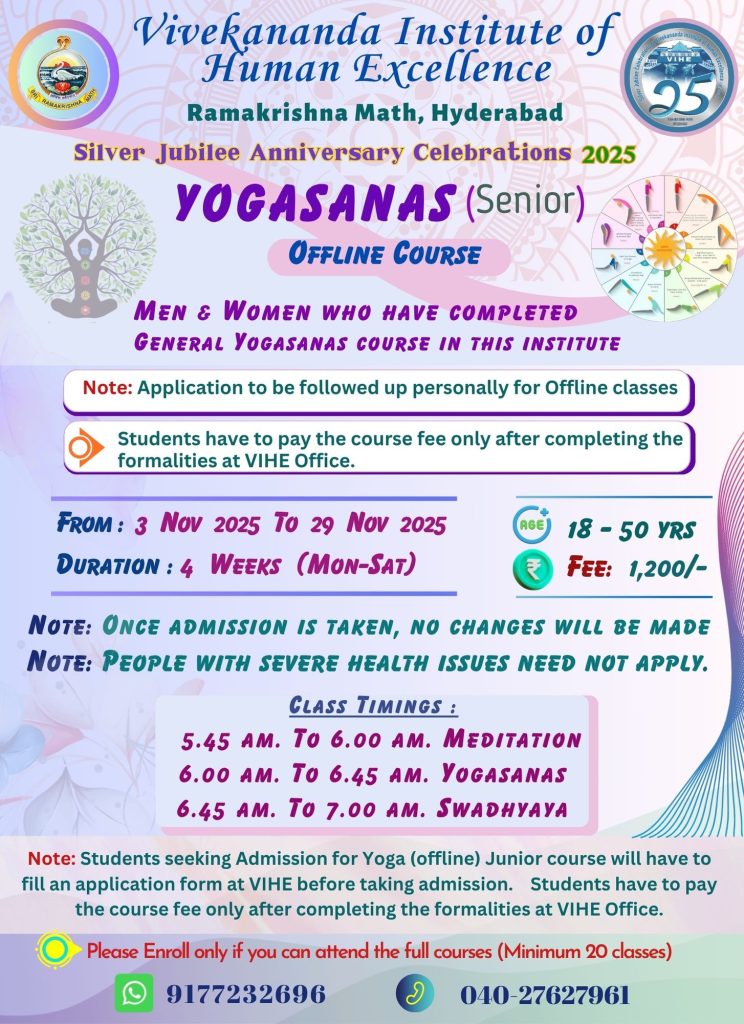 Yogasanas (Offline) Senior & Junior Course Admission Note