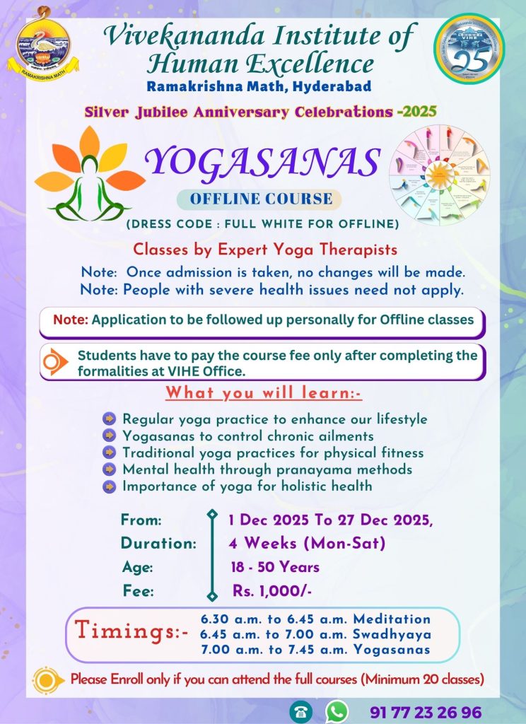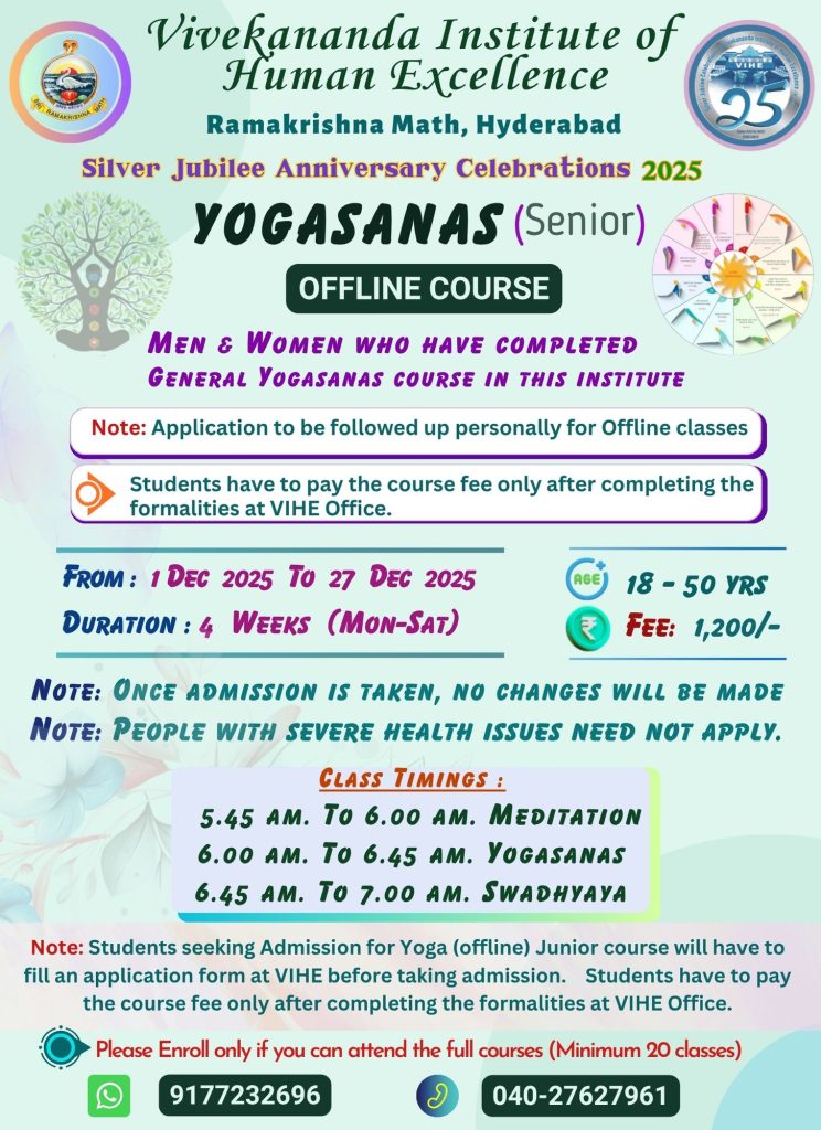 Yogasanas (Offline) Senior & Junior Course Admission Note