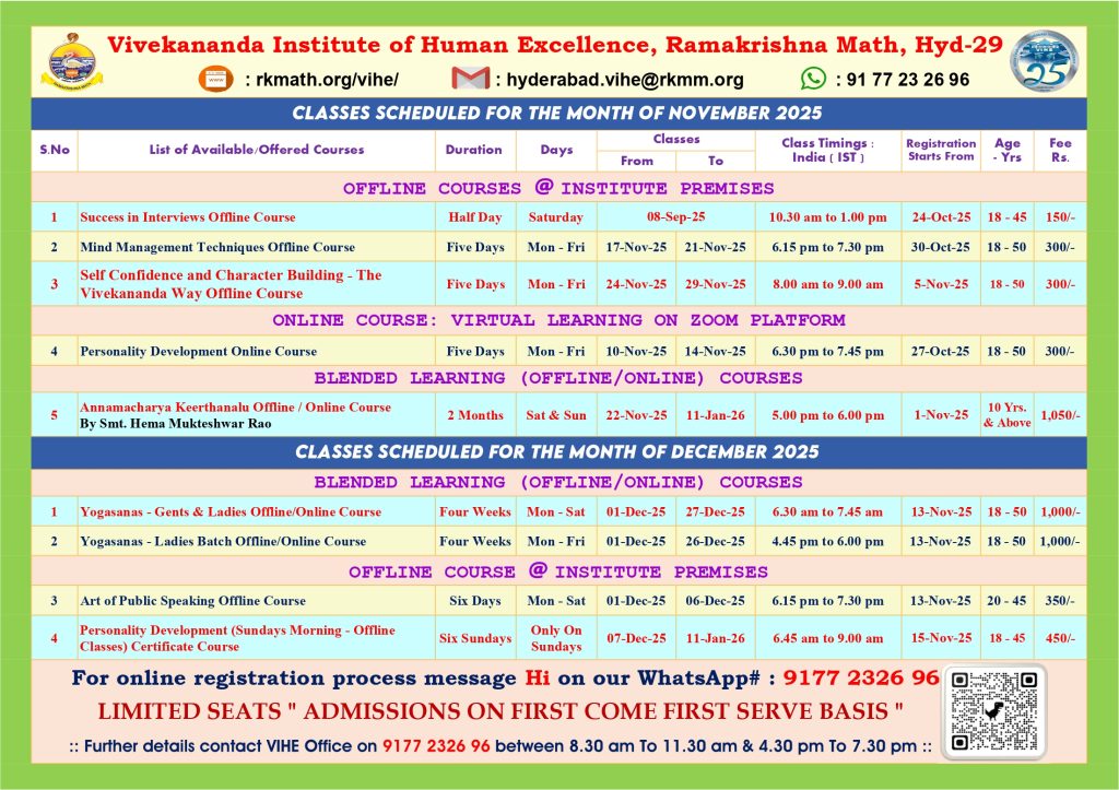 VIHE November - December 2025 Courses Schedule Every Month after 27th monthly schedule will be updated