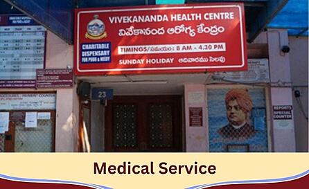 The Vivekananda Health Center. run by Ramakrishna Math. operates daily between 8 am & 4.30 pm. The Health Centre has Allopathic, Ayurvedic and Homeopathic sections. Experienced doctors come to the Health Center twice or thrice a week to render honorary service in their respective specialized areas such as General Medicine, E.N.T., Minor Surgery, Opthalmology, Dental care, Gynaecology, Primary Investigation Laboratory, Psychology Consultation & Counselling, Pain Clinic, Physio, Yoga Therapy, etc.